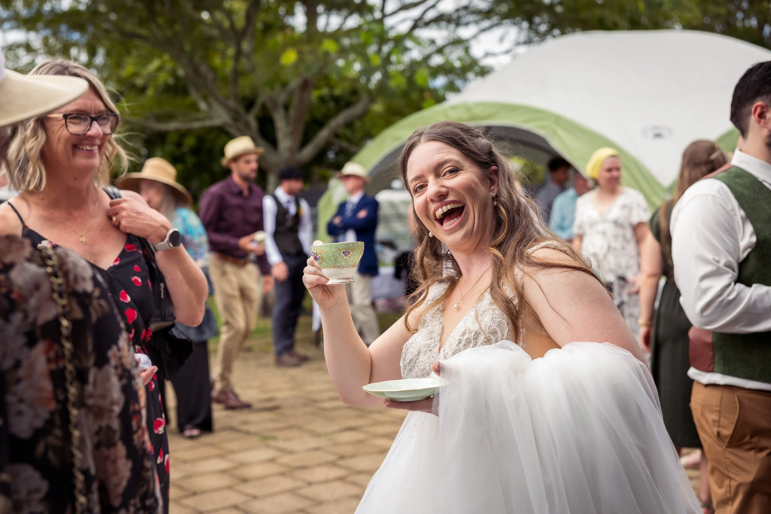 Mikaela has a real love for tea, and that became one of the most memorable touches of the day. After the ceremony, guests were treated to a wide selection of specialty teas — a thoughtful and personal twist that created such a relaxed and welcoming atmosphere. Instead of the usual rush, everyone slowed down, enjoyed the moment, and shared in something that was so distinctly them. Even the cake cutting became part of this experience, served alongside tea in a way that felt intimate and intentional.